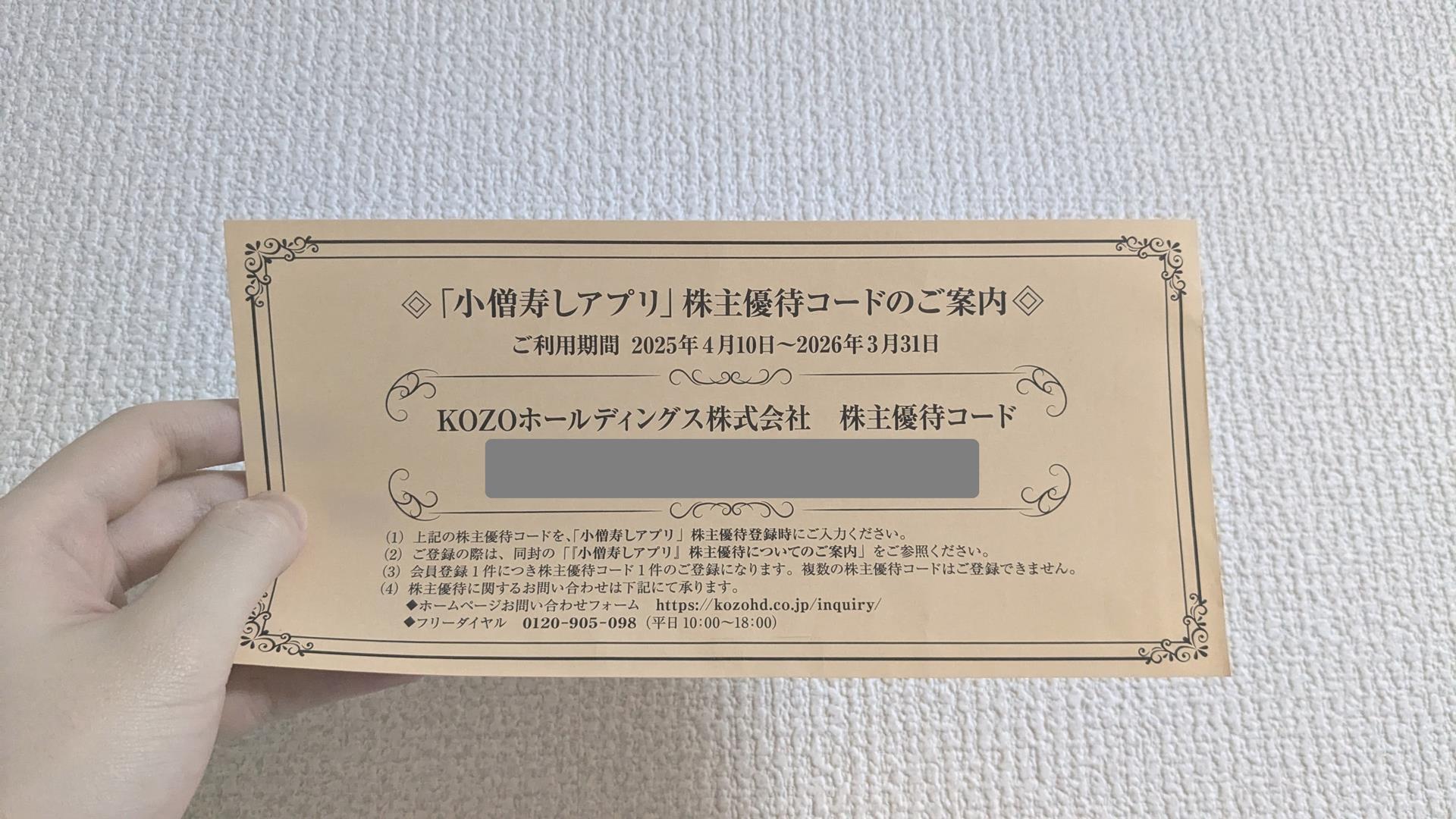 【2025年】株主優待でもらったもの&議決権行使で抽選でQUOカード 2025年に手に入れた株主優待まとめと、それに加え、「議決権行使で抽選でQUOカードがもらえる企業」をまとめました。2024年にもらった株主優待はこちらKOZOホールディングス(9973)|株主優待コード「自社グループ店舗(店舗限定) 及び... お金を整える