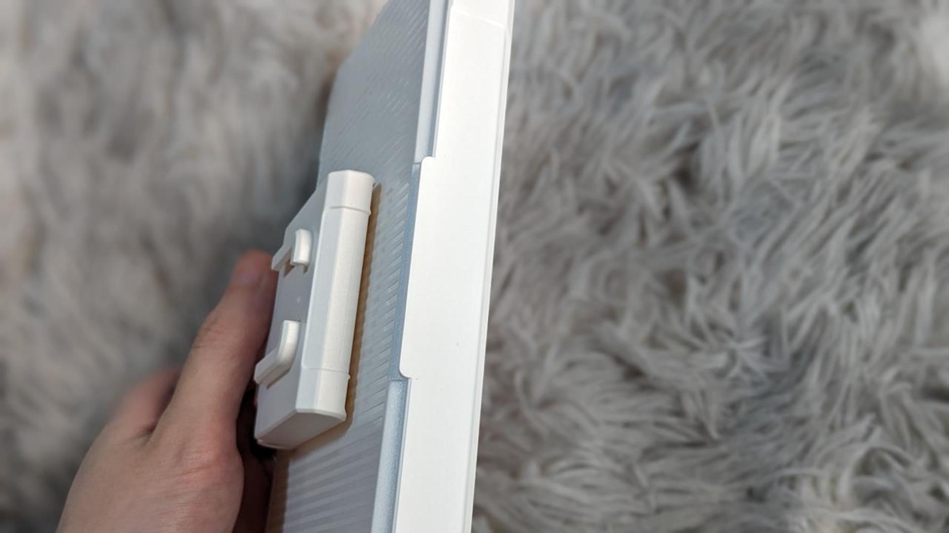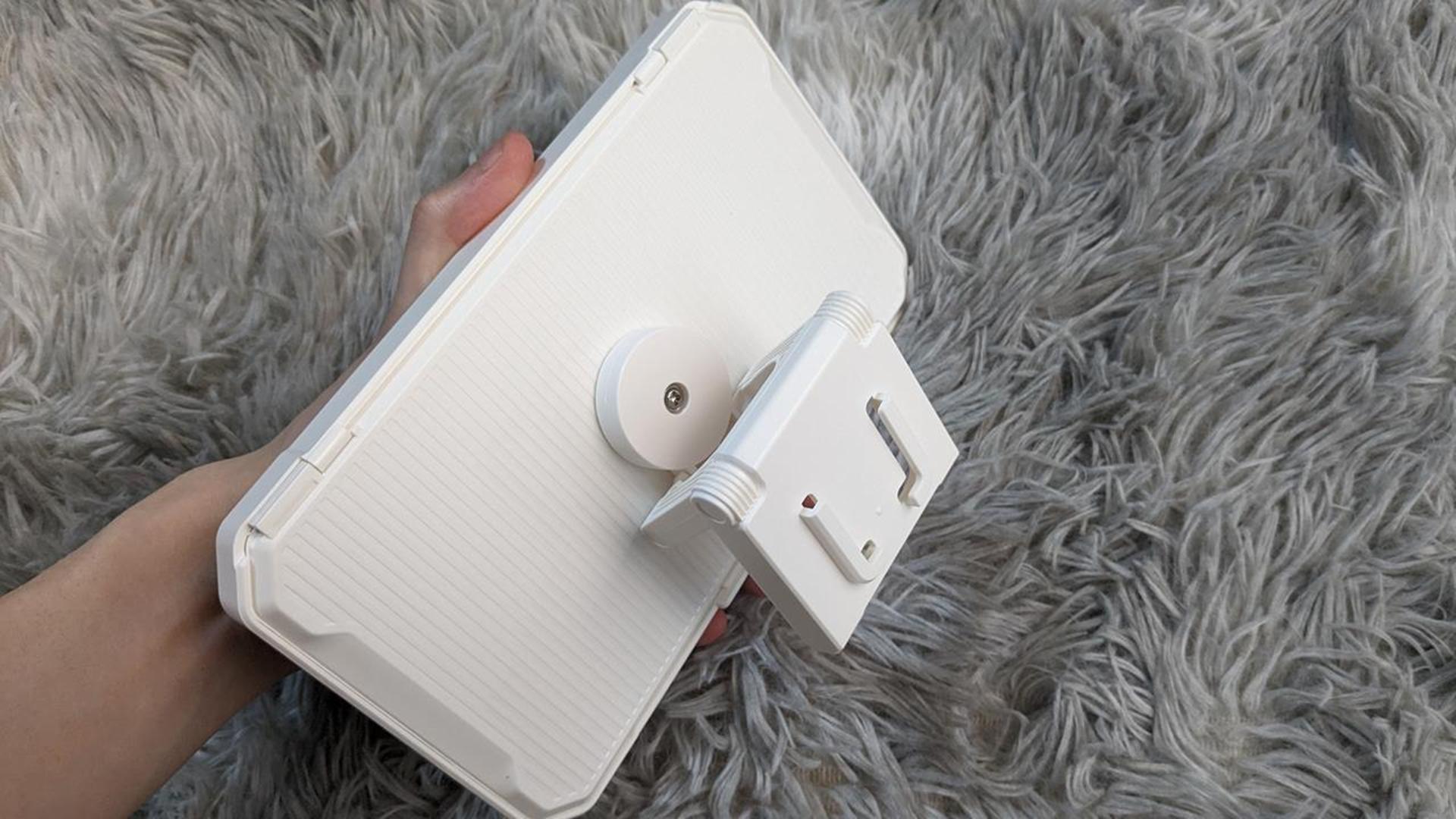 背面に伸縮可能な台座があるので、好きな角度に立てかけることができます。